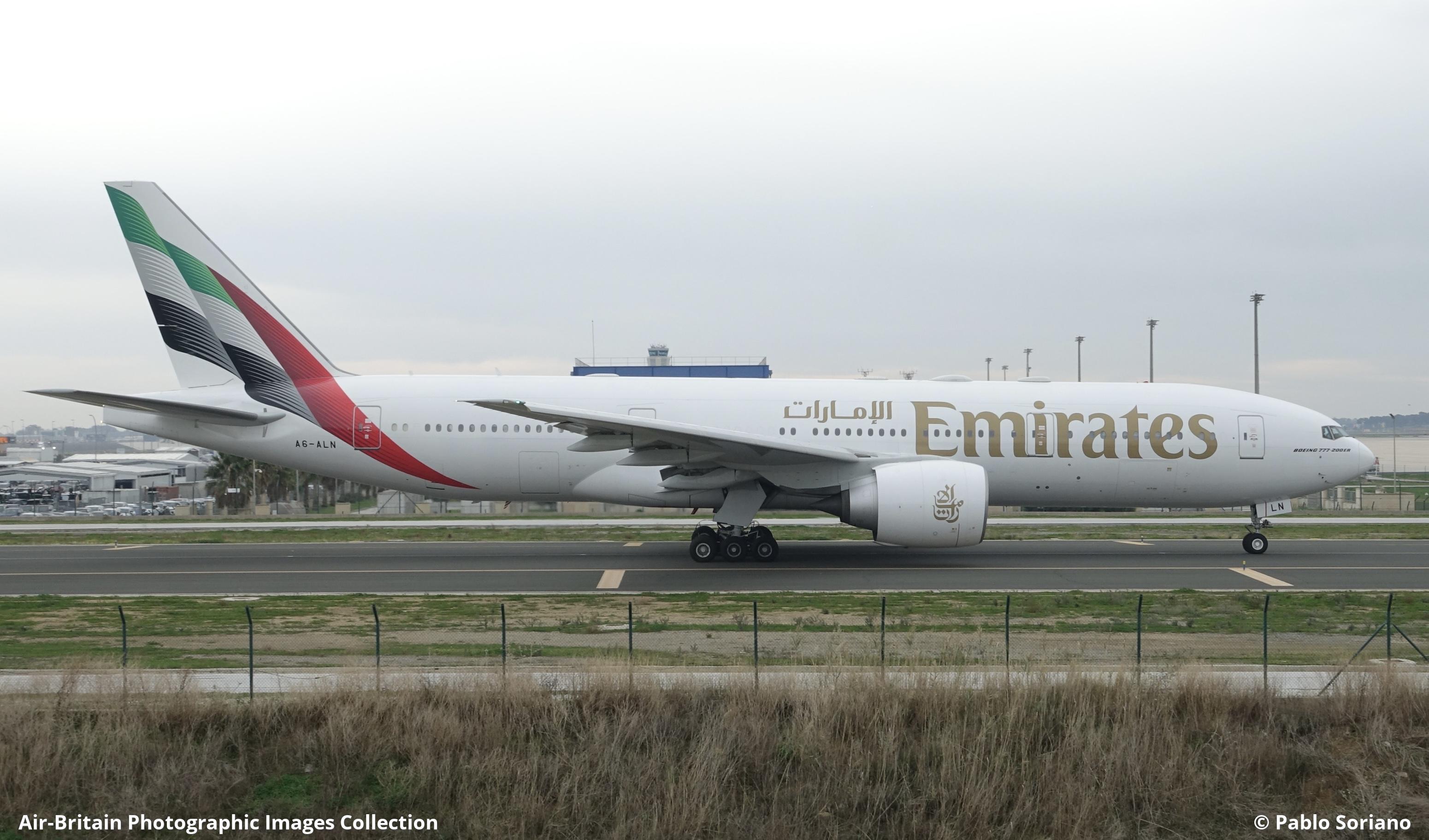 A6-ALN Boeing 777-2ANER Emirates (EK / UAE) Malaga-Costa del Sol (Pablo Ruiz Picasso) (AGP / LEMG), Spain Pablo Soriano - 10/12/2025